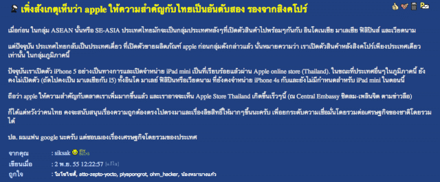 pantip-apple-store-thai-rumor วันที่: 28/11/2012 khajochiแฟนพันธุ์แท้สตีฟ จ็อบส์, บล็อกเกอร์ที่เชื่อในรักแรกพบ, ชาบูภริยายิ่งกว่าใคร บล็อกเกอร์ : Khajochi.com Social Media : @Khajochi, Facebook, Google+