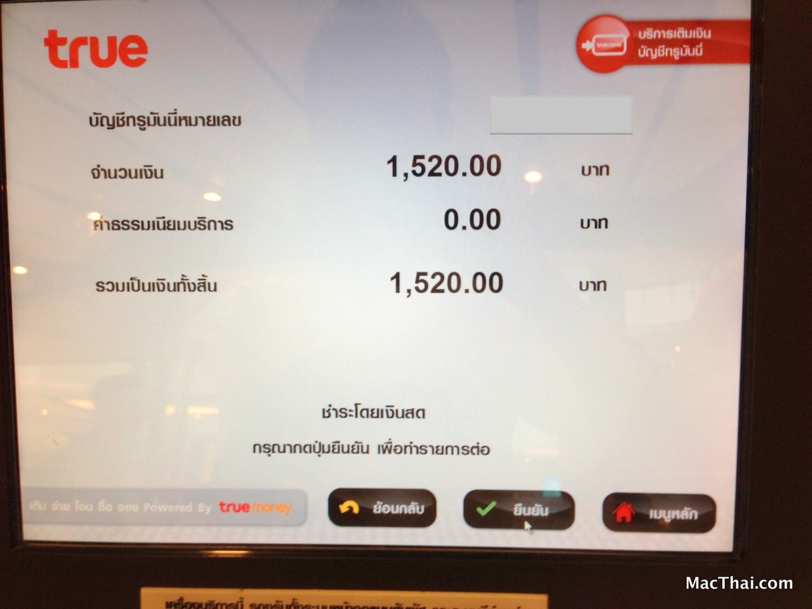 ทดลองเติมเงินเข้าบัญชีด้วยการไปที่ตู้ทรูมันนี่ จากนั้นก็เลือกเติมเงินเข้าบัญชีทรูมันนี่ ใส่เงินเข้าไปที่เครื่อง แค่นี้ก็เสร็จ ไม่เสียค่าบริการใดๆ เพิ่มเติม