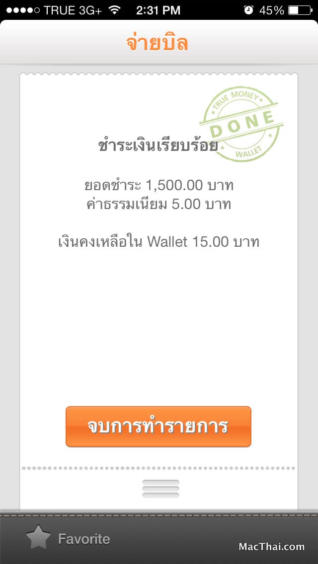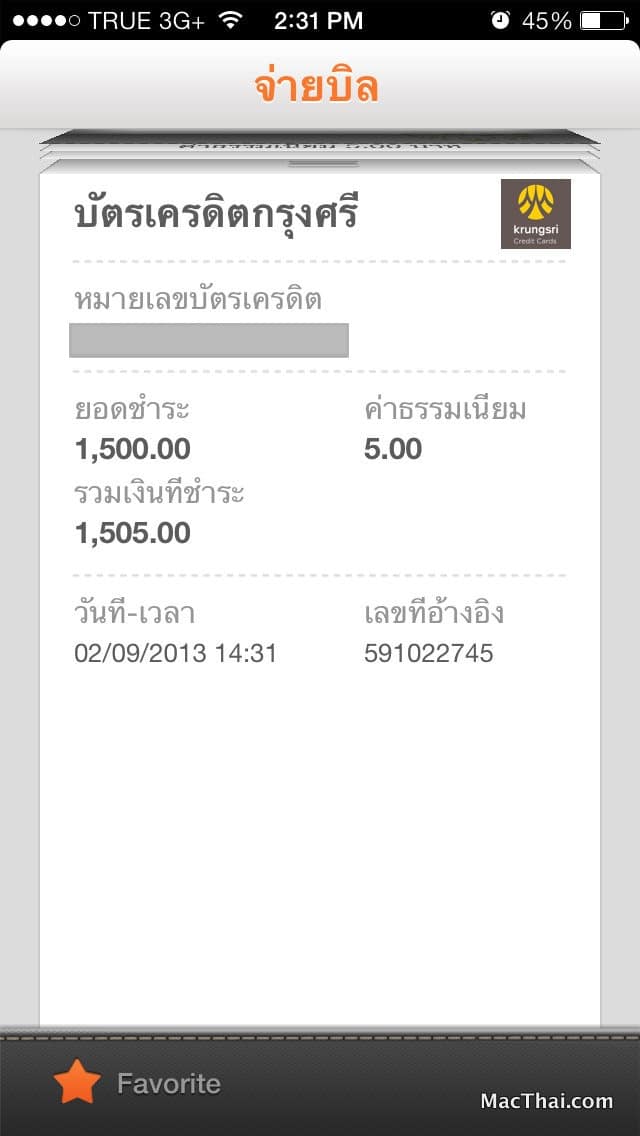 หลังจากชำระแล้ว จะมีใบแสดงรายการและรายละเอียดการชำระเงินให้ดูได้ โดยเราสามารถเลือก Favorite ไว้ดูทีหลังได้ด้วย