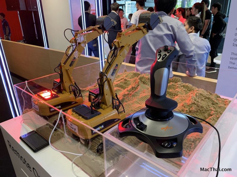 สาธิตการทำงานบน latency หรือค่าความหน่วงที่ต่างกันในการสั่งงานจากระยะไกล (remote) โดยใช้รถตักจำลอง 2 คันมาทดสอบ คันแรกจะเชื่อมต่อกับเครือข่าย LTE ในขณะที่รถคันที่ 2 จะเชื่อมต่อกับ 5G ซึ่งตัวควบคุม (Joystick) จะส่งคำสั่งควบคุมเดียวกันไปยังรถตักทั้ง 2 คัน โดยรถตักที่ใช้ 5G จะตอบสนองต่อการควบคุมได้แบบเรียลไทม์