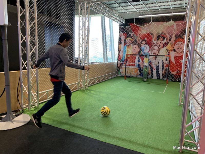โดย เราเตะบอล แล้ว หุ่นยนต์ จะป้องกันประตู ไม่ให้เรายิงเข้าประตู แต่จากที่ลอง ก็พอยิงเข้าได้เหมือนกันนะ สนุกดีครับ
