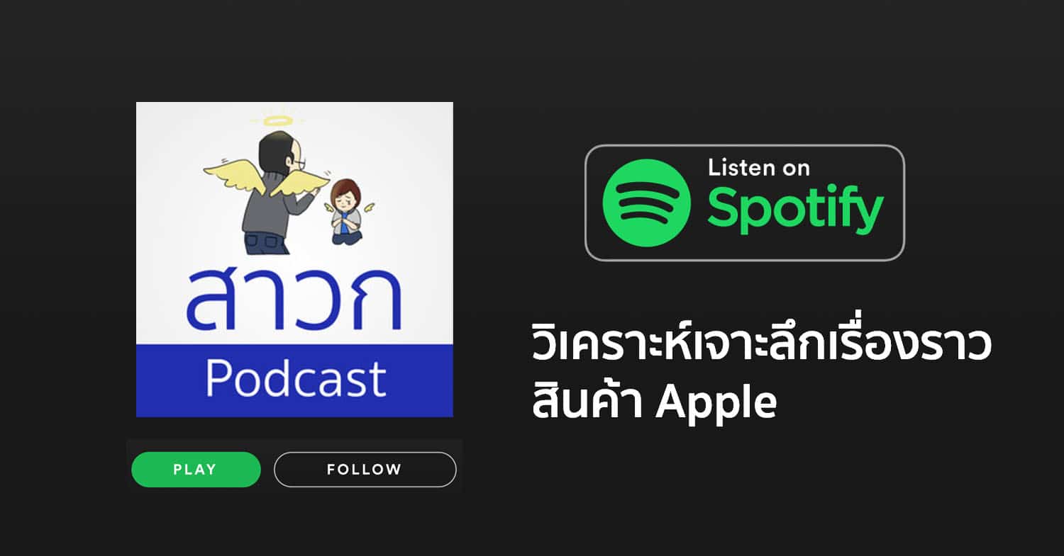 หลังจากที่ทีมงาน MacThai ได้เปิดตัว “สาวก Podcast” รายการเล่าเรื่องราว บทวิเคราะห์ เจาะลึก สินค้า Apple โดยสองผู้ดำเนินรายการแฟนพันธุ์แท้ Steve Jobs ผู้ร่วมก่อตั้งเว็บไซต์ MacThai ได้แก่ @Khajochi และ @TheMaccci วันนี้รายการสาวก Podcast ก็ดำเนินมาถึง EP. ที่ 8 และสามารถรับฟังได้แล้วบนช่องทาง Spotify