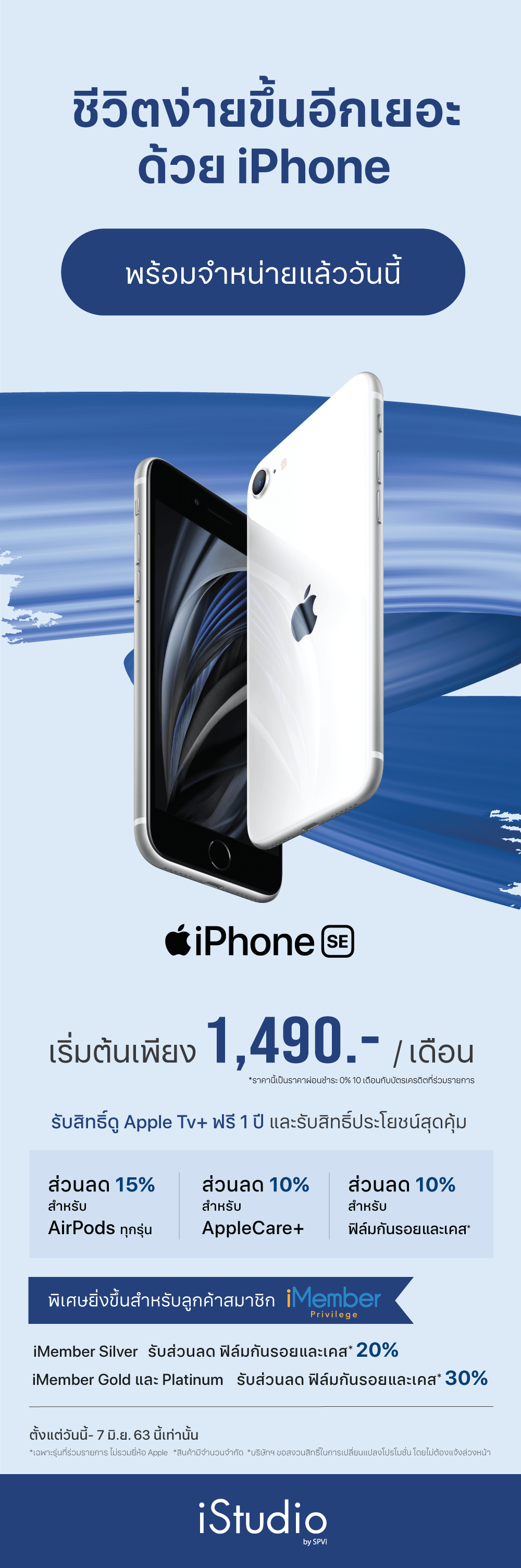 iStudio by SPVi เปิดขาย iPhone SE ในไทยแล้ว โปรเริ่มต้นผ่อน 1,490 บาทต่อเดือน !!