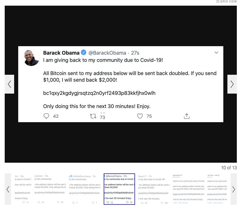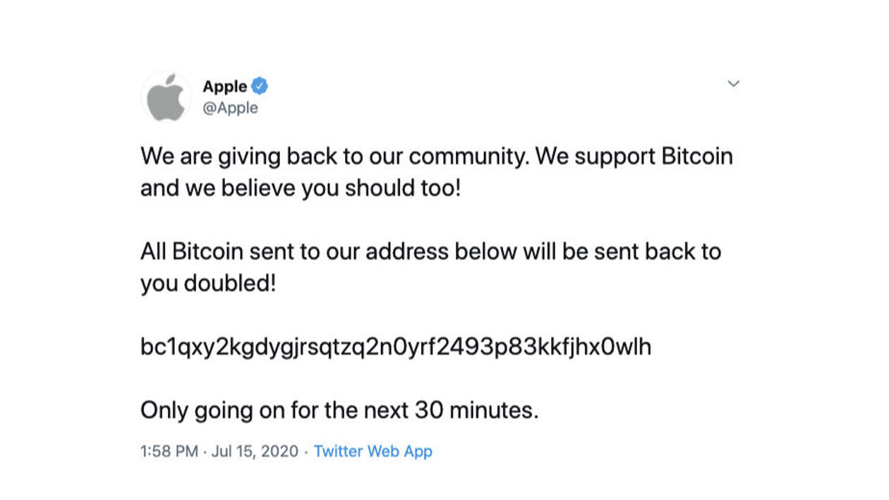 เป็นข่าวใหญ่ที่ช็อกวงการเป็นอย่างมาก เมื่ออยู่ดี ๆ ณ เวลาประมาณตีสามของเช้าวันที่ 16 กรกฏาคม สื่อต่างประเทศหลายรายได้รายงานการทวีตข้อความที่คาดว่าน่าจะเป็น Spam พร้อมกันจากบัญชีของผู้มีอิทธิพลระดับโลก ตั้งแต่ Barak Obama, Joe Biden, Elon Musk, Jeff Bezos, Warren Buffett ศิลปินอย่าง Wiz Khalifa, Kanye West หรือแม้กระทั่งบัญชีของบริษัทระดับโลกอย่าง Apple ก็ทวีตข้อความดังกล่าวด้วย