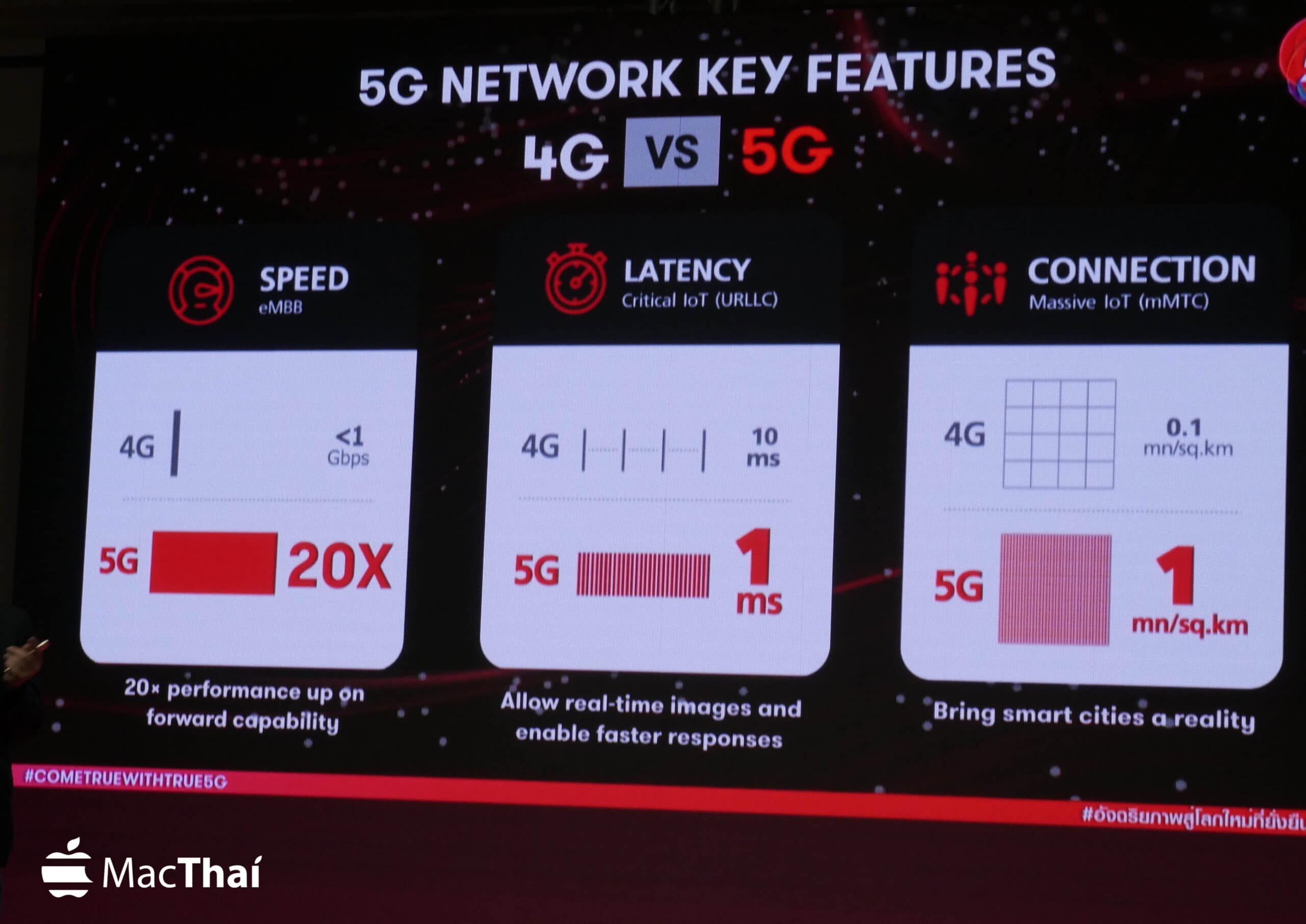 ทางทรูยังได้กล่าวถึงคุณสมบัติของ True 5G ว่ามีความพิเศษเหนือคนอื่นและดีกว่า 4G เดิมอย่างไร ซึ่งสรุปออกมาให้ฟังได้ง่าย ๆ ดังนี้