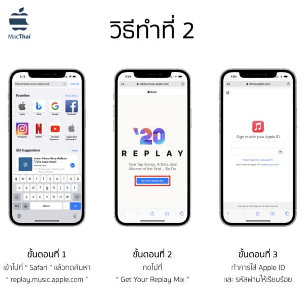ขั้นตอนที่ 1 : เข้าไปที่ “ Safari ” แล้วกดค้นหา “ replay.music.apple.com ”