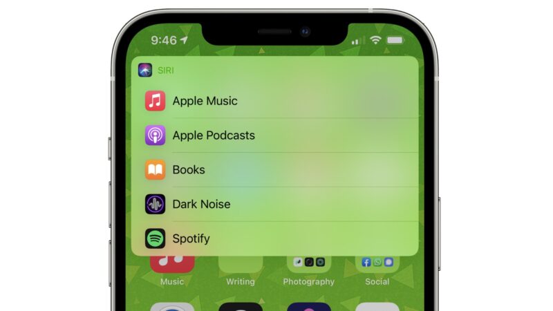 Siri เสนอรายการแอพเสียงที่คุณติดตั้งทุกครั้งที่คุณร้องขอเนื้อหา และตัวเลือกนั้นจะกำหนดพฤติกรรมของ Siri ในอนาคต แต่ Siri อาจถามอีกครั้งในอนาคต และแม้ว่าจะเลือกตัวเลือกเสียงที่ต้องการแล้ว แต่ก็สามารถทำได้ สามารถเปลี่ยนแปลงได้โดยขอแอพอื่น ตัวอย่างเช่นหากคุณเลือก Spotify แต่ต้องการเปลี่ยนเป็น Apple Music คุณสามารถพูดว่า “ สวัสดี Siri เล่นเพลงใน Apple Music ”
