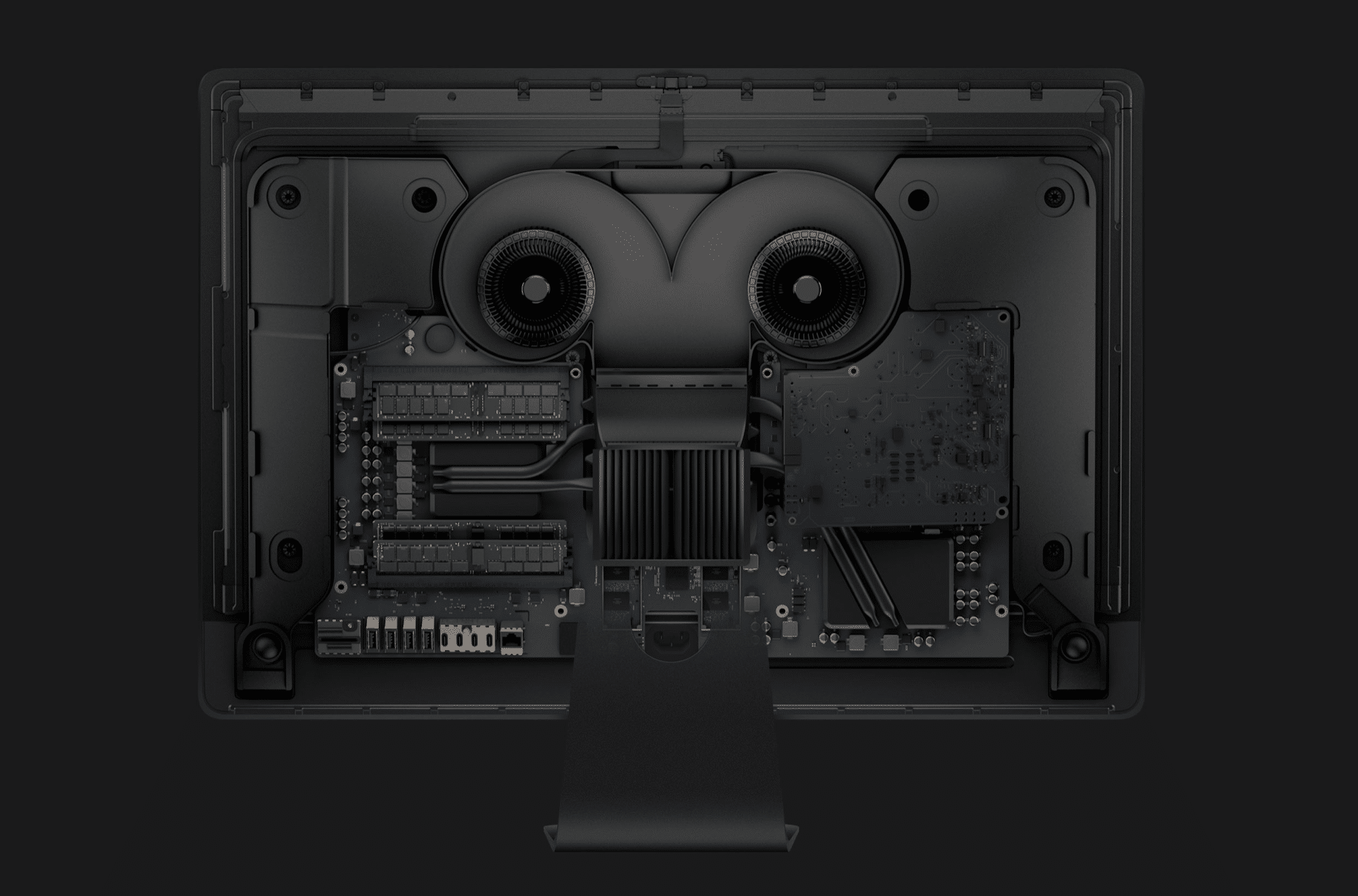 iMac Pro ถูกออกแบบภายในมาให้ใช้โปรเซสเซอร์และกราฟิกที่